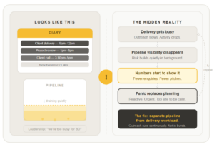 We see the same pattern in agencies again and again. New business is quiet → activity spikes New business improves → activity stops Delivery gets busy → outreach disappears Pipeline dips → panic returns It’s not a capability issue. It’s a rhythm issue. Growth becomes predictable when new business is treated like an operating process,[...]